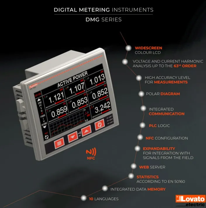 La nueva generación de analizadores de redes DMG, en combinación con el sistema EASY-BRANCH, es el resultado de un largo esfuerzo de investigación llevado a cabo por LOVATO Electric para facilitar el trabajo del usuario final y hacer que el proceso de gestión de la energía sea más eficiente, moderno y tecnológico. El resultado es un sistema innovador a la vanguardia de la tecnología moderna, una auténtica revolución en el campo de la monitorización energética.