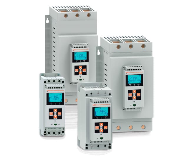 Arrancadores ADXL: Son estáticos de control de dos fases y bypass incorporado para el control de arranque y parada de motores trifásicos asíncronos. Dotados de pantalla retroiluminada de iconos y conexión NFC, facilitan la configuración inmediata incluso desde teléfonos móviles y tabletas, son aptos tanto para aplicaciones “plug and play” simples, como para aplicaciones que requieran máximas prestaciones de control y protección del motor durante el arranque y la marcha, presentan funciones de protección tanto para el arrancador como para el motor, permitiendo habilitar alarmas que señalan la necesidad de mantenimiento.