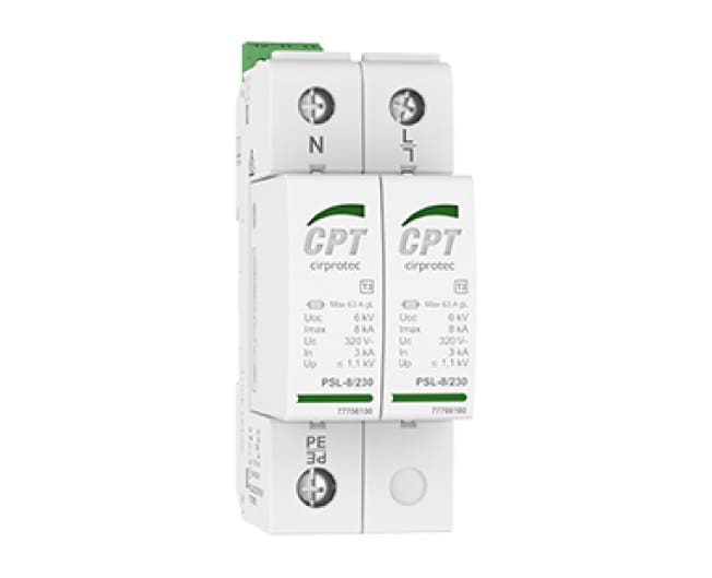 PSC es la gama de dispositivos combinados para descargar corrientes de tipo rayo (tipo 1 / clase I) y proteger contra sobretensiones transitorias inducidas (tipo 2 / clase II), según norma IEC 61643-11. Formato desenchufable para carril DIN.