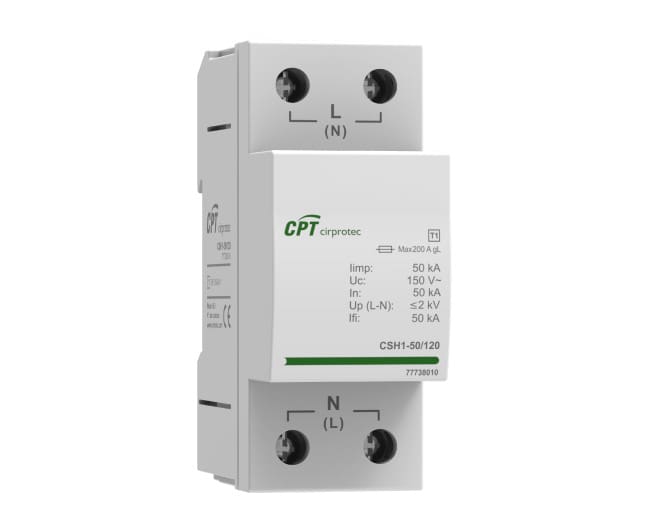 CSH es la gama más robusta de descargadores unipolares tipo 1 / clase I, capaces de derivar la energía (corriente) conducida a partir del impacto directo del rayo (10/350) sobre un sistema de pararrayos externo (SPCR) o sobre acometidas aéreas, según norma IEC 61643-11. Formato monobloc para carril DIN