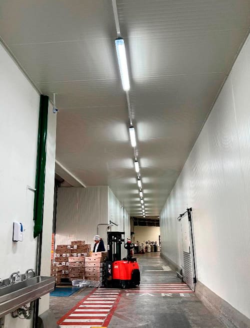 Gracias al éxito logrado a través de los productos Lovato suministrados por Laumayer, la especificación y el acompañamiento, requirieron asesoría, estudios y diseños de iluminación del equipo de VCP Ecolighting para reemplazar tecnologías antiguas de iluminación deficientes como las MetalHalide de 400w que estaban instaladas en las cavas, por 90 luminarias LED herméticas capaces de resistir temperaturas por debajo de los-20° C que permitieran la iluminación eficiente para el desarrollo de las actividades dentro de las cavas con temperaturas de colores que dieran perspectivas de tranquilidad, asepsia y ambiente cómodo con sensación de calidez para los colaboradores de la planta.