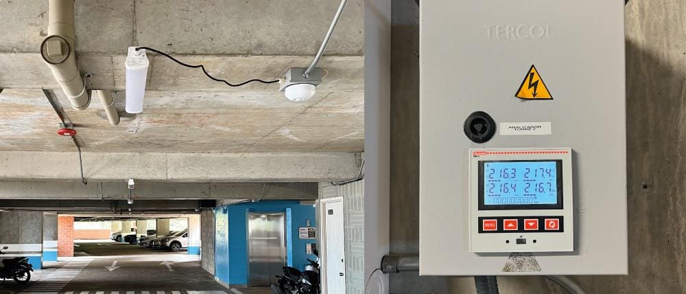 Para realizar la migración de tecnología del alumbrado de la urbanización y poder suplir las necesidades de ahorro en consumo de energía e iluminación eficiente, fue necesario intervenir con la marca Leviton, instalando 120 sensores ODC0S-IW por zonas para que solo se encendieran entre 4 y 5 luminarias por espacio, mediante la función de programación de encendido y apagado, de acuerdo a la configuración dada al sistema de fotoceldas; teniendo en cuenta que los parqueaderos del edificio tienen iluminación natural en distintos puntos de manera particular dependiendo la hora del día. Dichos sensores fueron programados para funcionar entre el inicio del ocaso y hasta el amanecer, solo hay unos espacios donde funcionan a necesidad por la poca luz, siempre y cuando algún objeto, propietario, colaborador o visitante, sea leído dentro del perímetro que hace activar el dispositivo.