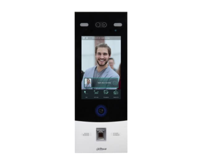 Terminal de control de acceso, reconocimiento facial, pantalla táctil, lector de tarjeta y huellas dactilares, cerraduras magneticas y accesorios.