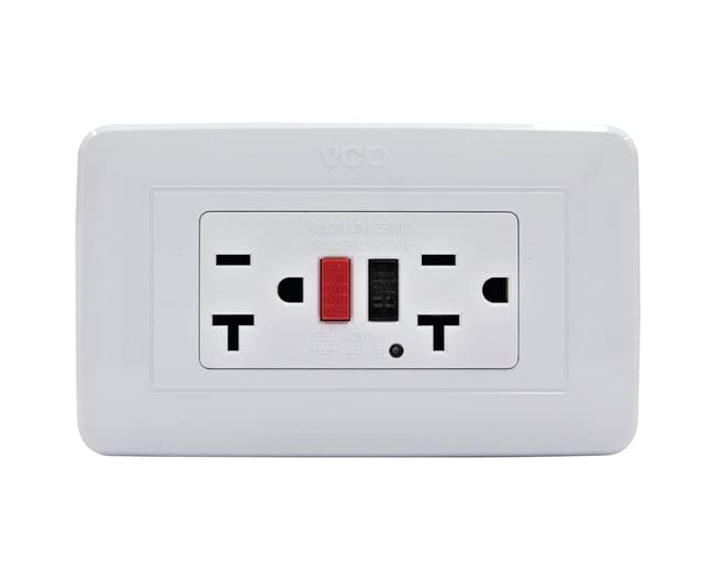 Los tomacorrientes GFCI o con interruptor de falla tierra (Ground Fault Circuit interrupter) son interruptores diferenciales de alta sensibilidad que protegen a las personas de fugas de corriente por fallas eléctricas. Los tomacorrientes cumplen las funciones de un tomacorriente convencional, pero adicionalmente cuenta con un circuito electrónico que se activa cuando detecta diferencias de corriente entre línea y neutro o fallas a tierra.